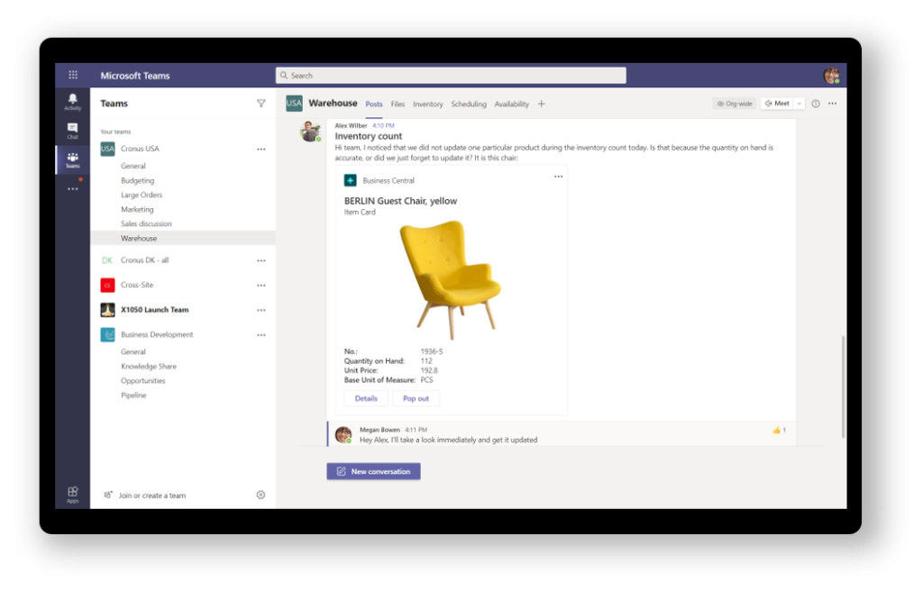 Make faster decisions by sharing Business Central data within Microsoft Teams conversations and tabs